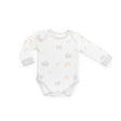 GOTS Certified Organic Cotton White With Gray Bunnies, Rainbows Envelope Shoulders and Snap Crotch 95% cotton, 5% Elastane Machine wash and dry low heat A baby basic with a bit of flare. Our darling organic cotton baby long sleeve bunsie, is the perfect long sleeve onesie for layering, or even on its one for comfort and style. With envelope shoulders and snatch crotch for easy dressing of even the wiggliest of sweet babies. Made of super soft organic cotton, so you can rest assured that only the best is next to baby’s sensitive skin. Coordinates with our organic cotton baby blanket for the perfect collection of baby essentials.