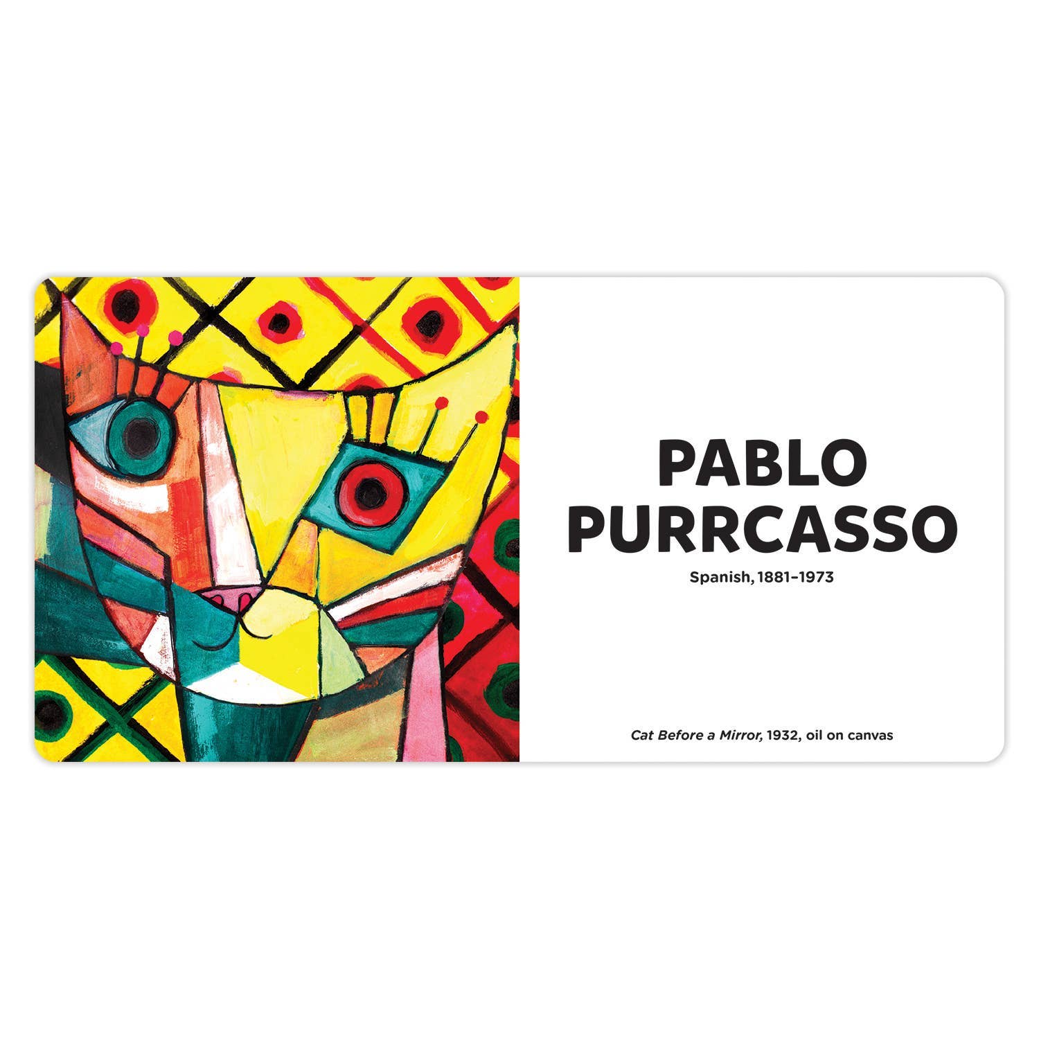 A pawsitively purrfect tour through modern art history! Introduce modern art meowsters with this book of adorable cat portraits, each inspired by an iconic style of art. The Artsy Cats Board Book from Mudpuppy features clever kitty-inspired artist names and painting credits, from Clawed Monet to Paw Klee.
