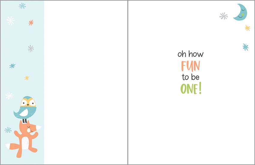 Birthday Greeting Card - 1st Birthday Forest Animals this color is curremtly out of stock, usually ships within 1-2 weeks.