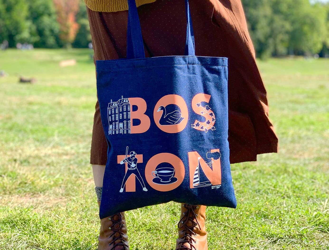 Boston Font Denim Tote this color is curremtly out of stock, usually ships within 1-2 weeks.