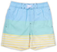 Shade Critters 4 Way Stretch Swim Trunk in Striped Colorblock. Featuring Sun Protective Fabrics with a upf50+ rating.