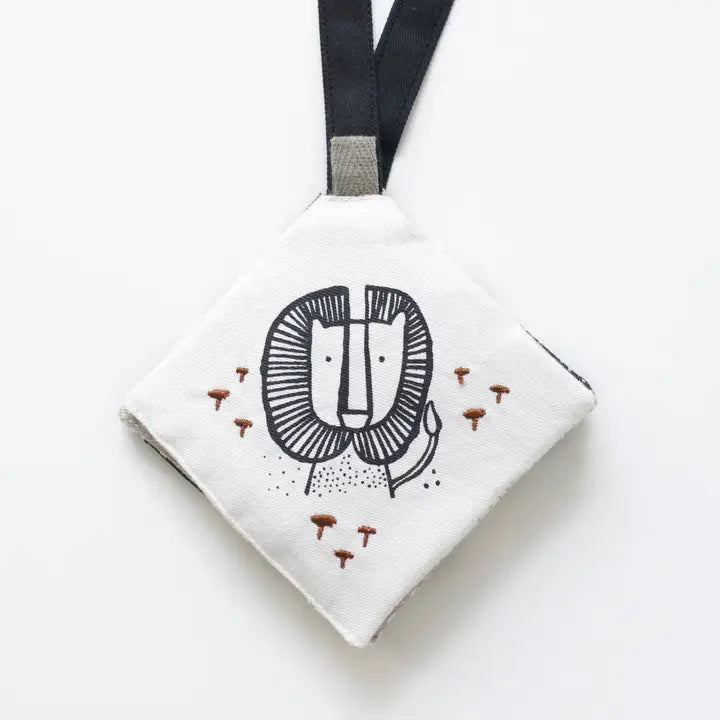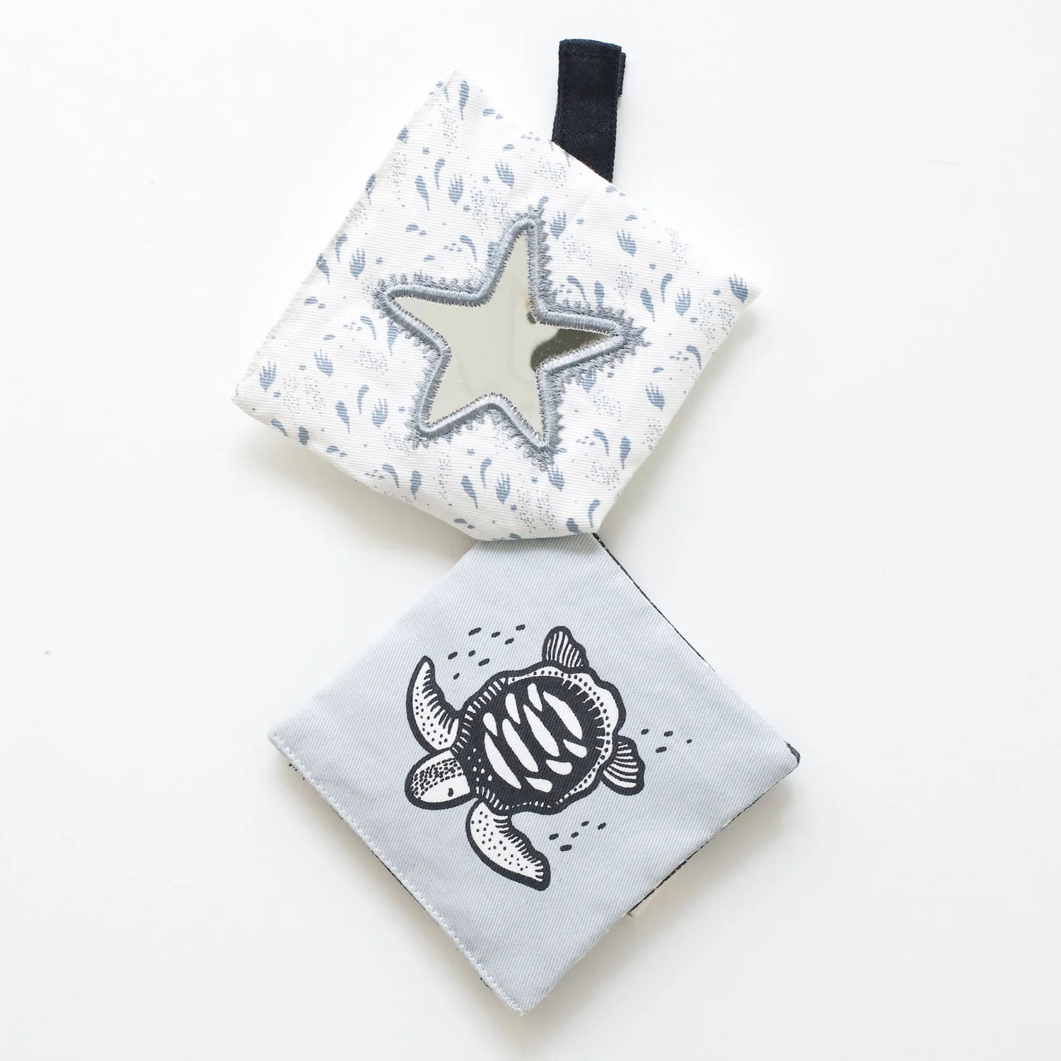 Encourage baby to observe the natural world with this ocean themed Crinkle Pages toy that attaches to stroller, car seat, diaper bag, or play gym. Spot animals that can be found in the ocean — a seahorse, turtle, sea star, octopus, and puffer fish that adorn the crinkly pages in our high contrast style. Each of the stimulating embroidered pages and mirror make this stroller toy super engaging for your little one. And with the stylish velcro strap it won't get lost while you're on the go. Easy to take on a trip and keep with you wherever you travel.