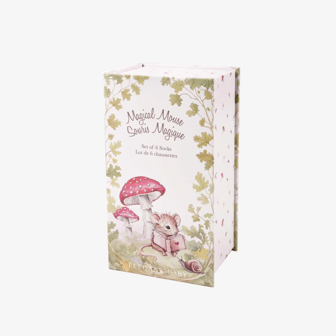 This six-pack of socks brings the magic of the forest to baby's toes, with cheerful prints, tiny mice, and playful pops of red. A whimsical finishing touch for enchanted outfits.