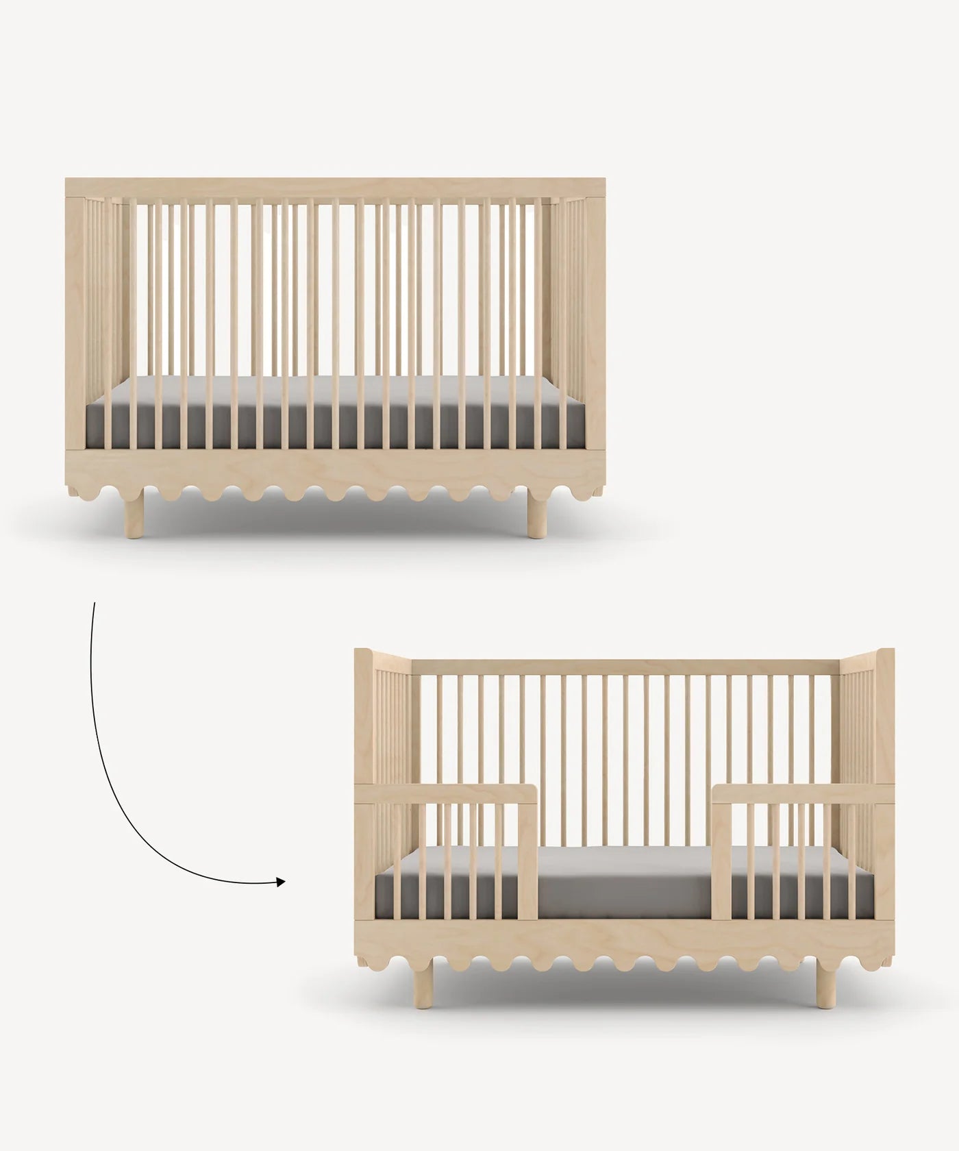 The Moss Conversion Kit is designed to support your child's growing independence. With a simple swap of one panel, your little one can safely climb in and out of bed on their own.