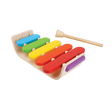 This wooden xylophone features five colorful panels that help with hand-eye coordination. Please note this xylophone is made for fun and may not be musically accurate.