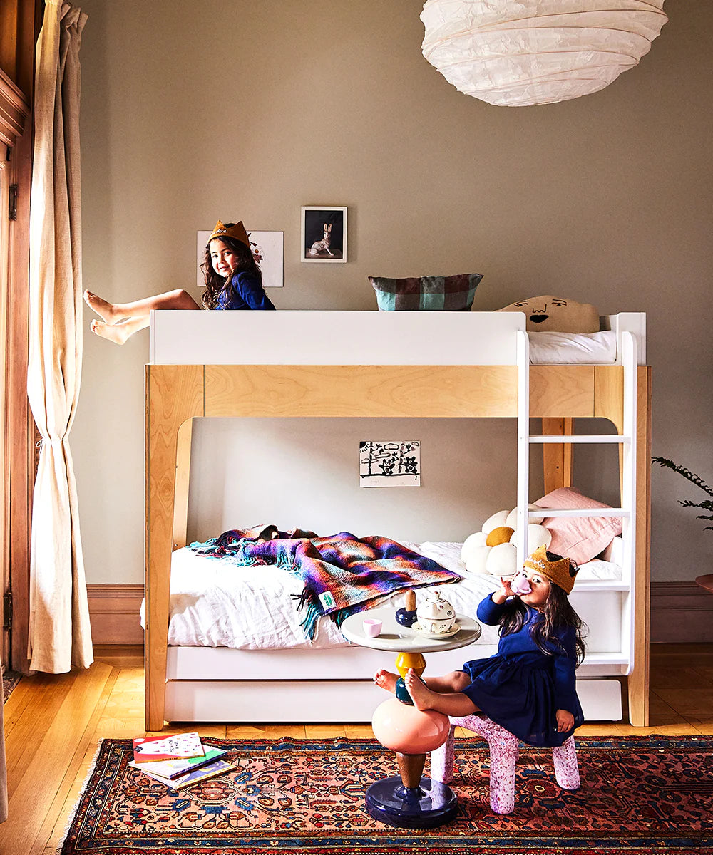 Our best-selling Perch Twin Bunk Bed has been a family favorite since 2009. Ethically crafted in Europe, it’s designed to adapt to your family’s evolving needs—use it as a bunk bed, separate it into a loft and twin bed, or add our Vertical Ladder and Perch Trundle for sleepovers.
