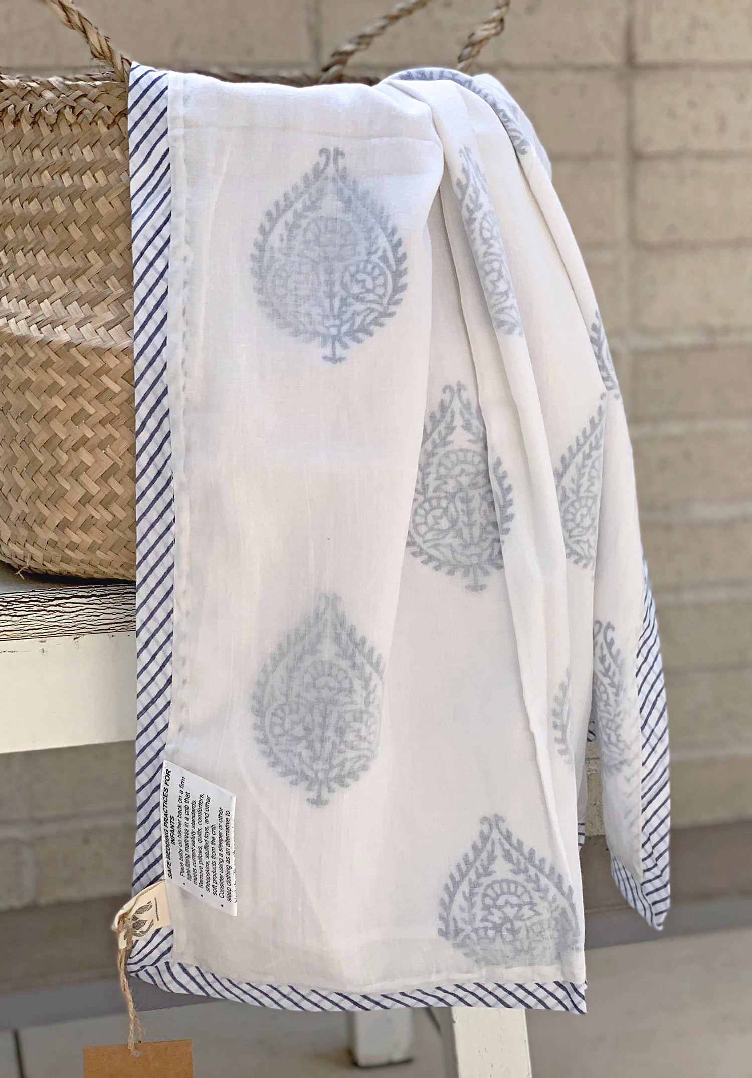 Receiving/Stroller Blanket: Handmade, Block-Printed Cotton