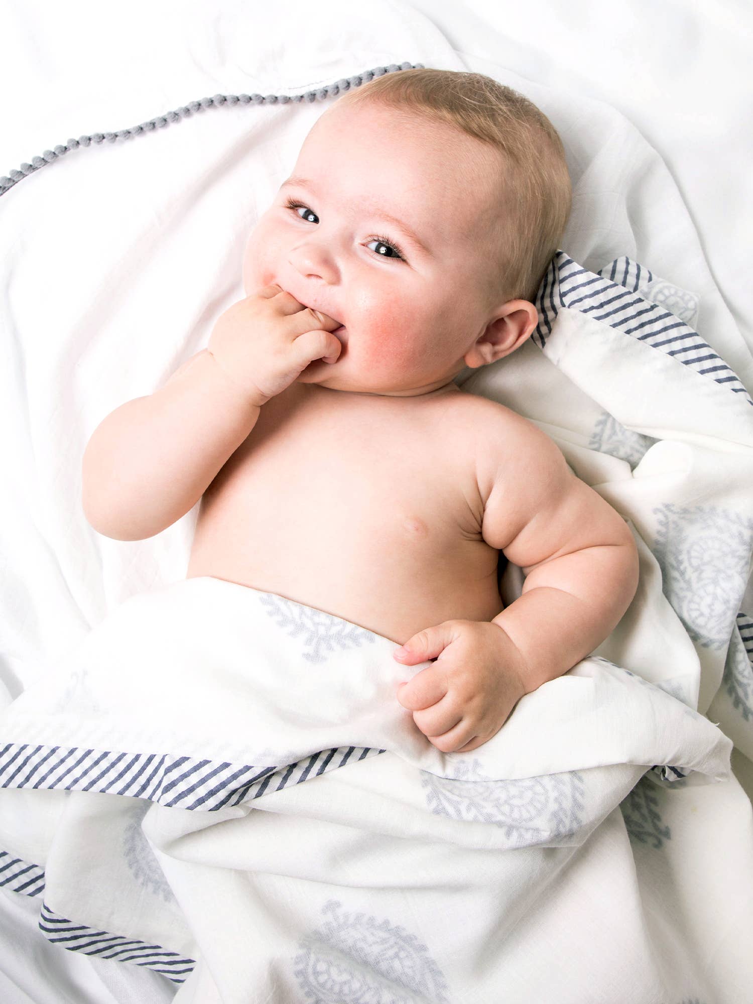 Receiving/Stroller Blanket: Handmade, Block-Printed Cotton - Fort this color is curremtly out of stock, usually ships within 1-2 weeks.