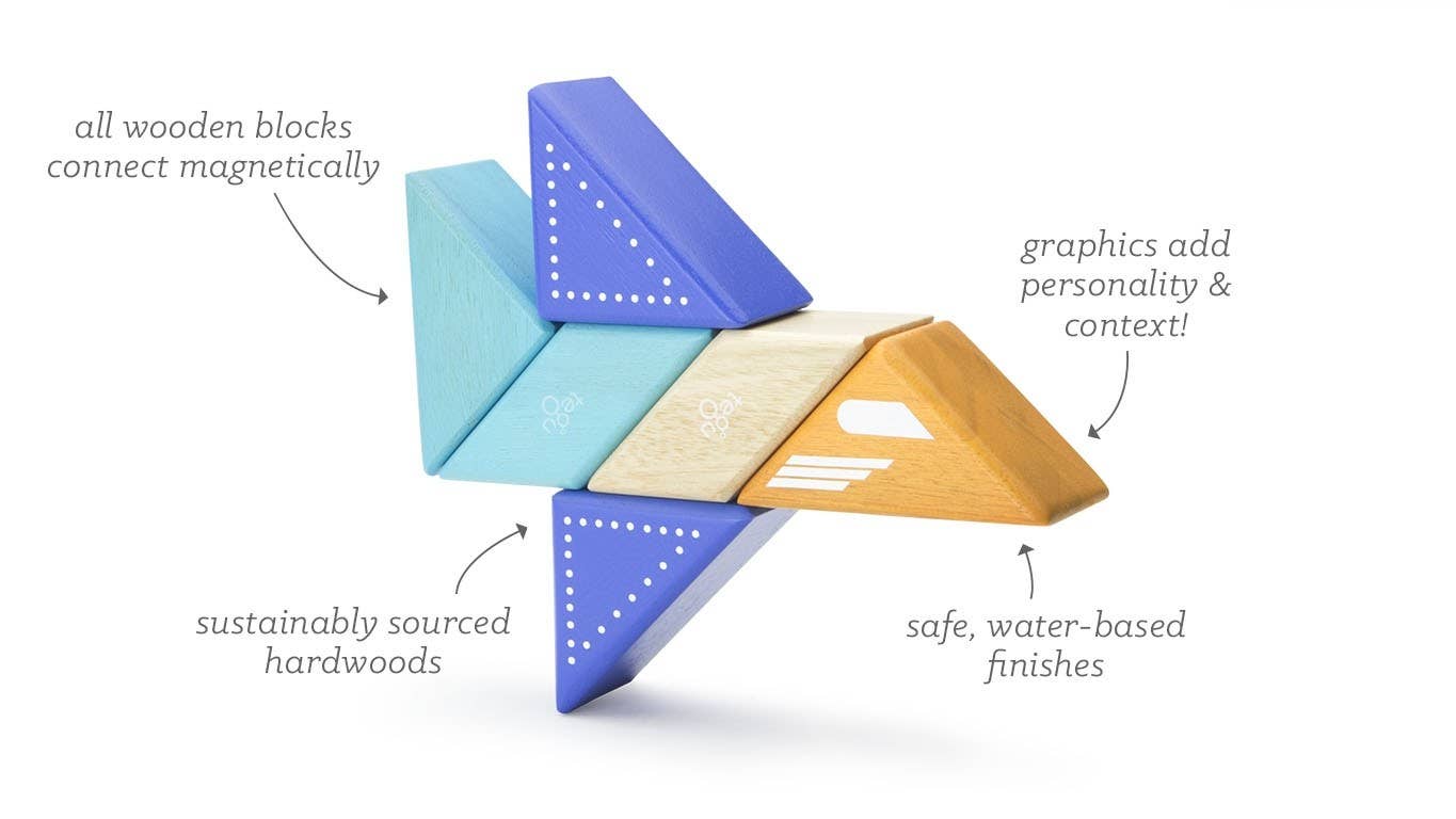 Perfect for travel, in the car, on the plane, and in the restaurant. Easy to pick-up and take anywhere, with over 60 possible creations! Fully Compatible with ALL other Tegu Magnetic Wooden Sets.